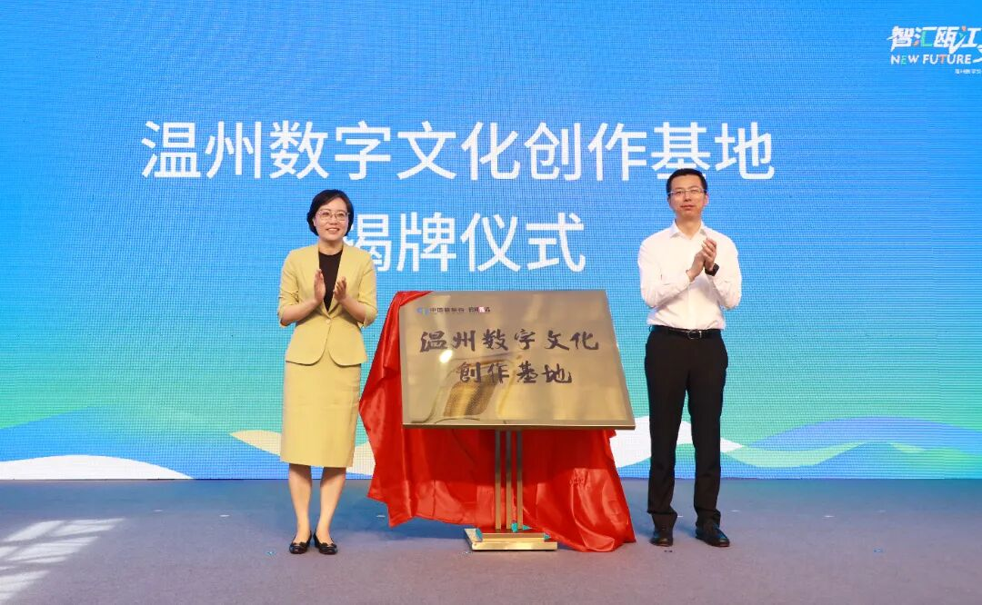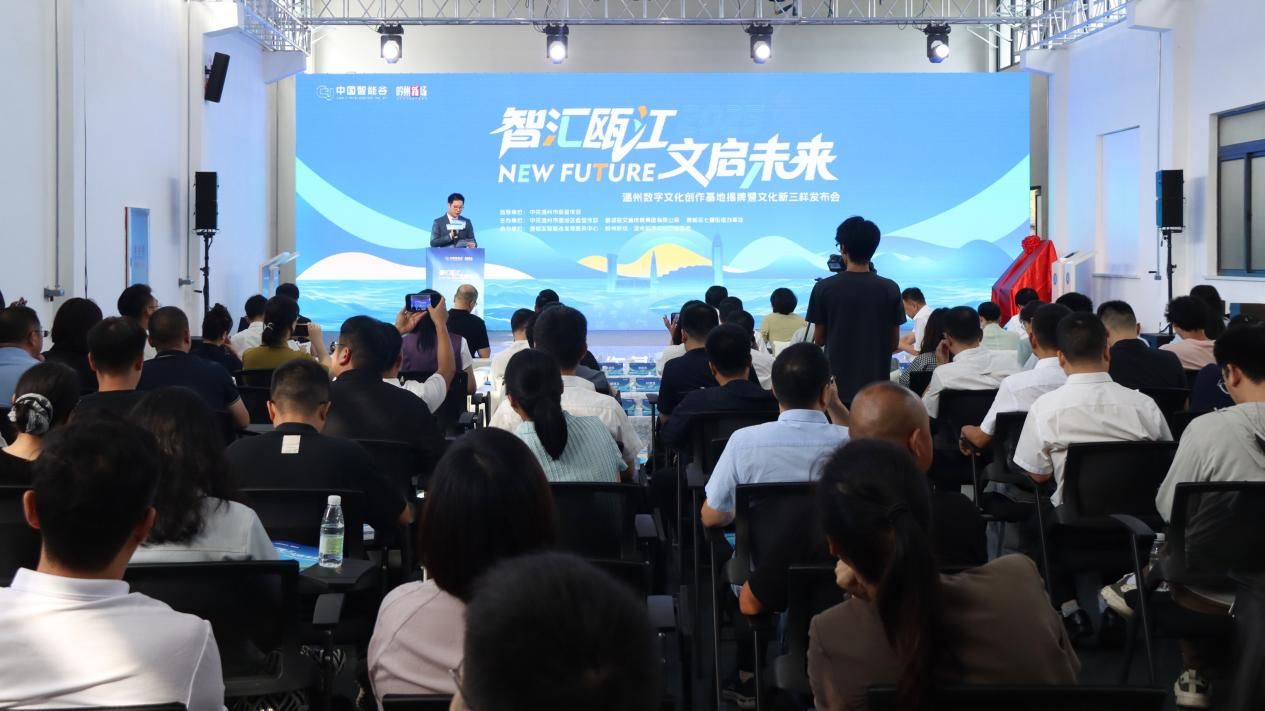“智汇瓯江,文启未来”温州数字文化创作基地揭牌暨文化新三样发布会现场。