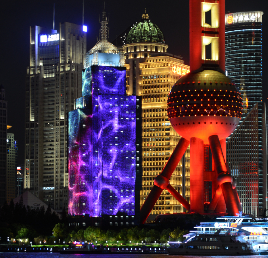 在上海外滩,由博烁诗(浙江)景观照明有限公司产品打造的港务大厦亮化工程,成为东方明珠旁一道新的风景。新华网发(博烁诗(浙江)景观照明有限公司供图)