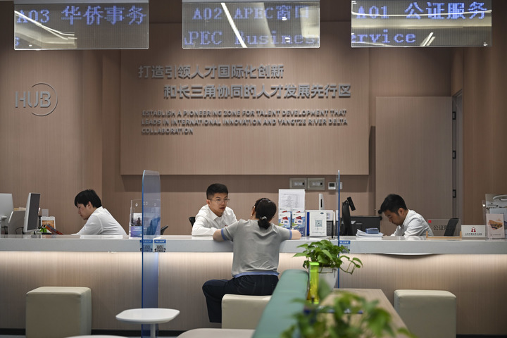 2025年9月10日,市民在上海虹桥国际人才服务中心办事大厅办理业务。新华社记者 陈浩明 摄
