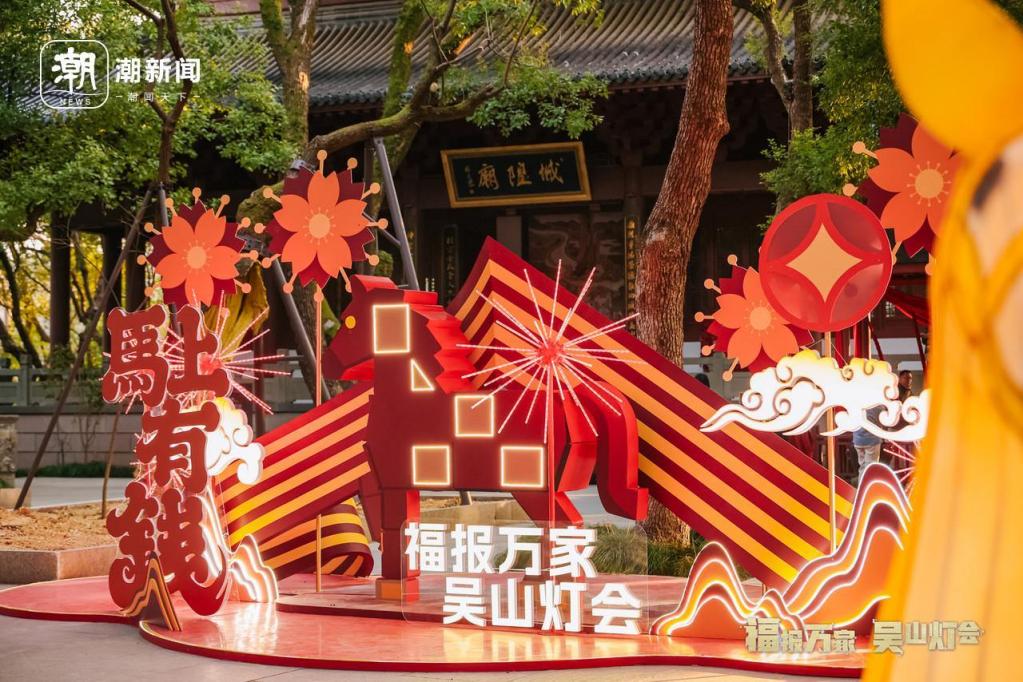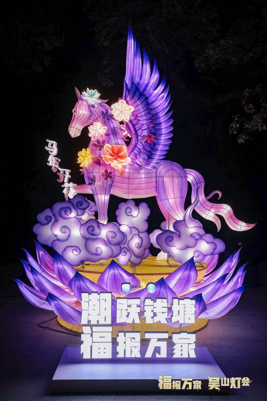 本次“潮跃钱塘 福报万家”吴山新春灯会在吴山城隍阁景区内设置了四大活动区域,其中吴山大观平台和城隍阁下的古树平台重点展示主题花灯。