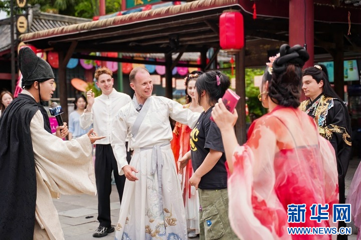 外国人在横店影视城体验古装剧拍摄。受访者供图