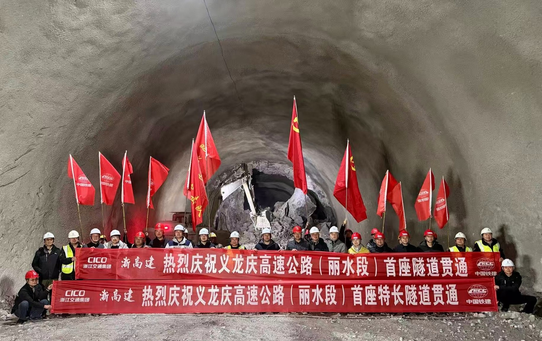 义龙庆高速公路(丽水段)首座隧道贯通。张有钢/摄