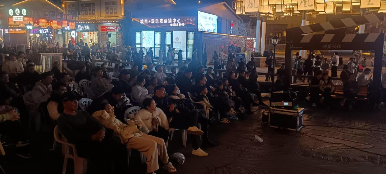 每晚夜幕未浓,广场便已热闹非凡:老人们提前占位,孩子们蹦蹦跳跳,年轻人三五成群畅谈欢笑,大家自带板凳围坐一堂,空气中满是新春的喜庆与邻里相聚的温情,这便是最动人的年味儿。8个夜晚8场精彩放映,兼顾老中青三代喜好,包括《流浪地球2》《南京照相馆》《长安三万里》等近年热播院线大片,涵盖主旋律佳作、经典喜剧、动画电影等多种类型,幕布亮起,喧闹渐静,乡亲们的目光一同聚焦银幕,晚风里的欢声笑语与影片情节交织,构成了春节最温馨的乡村图景。