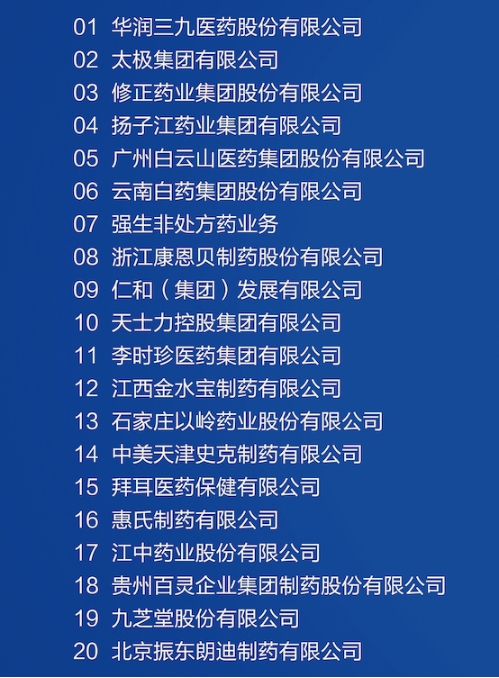 2021年10月18日,2021健康中国-首届中国OTC大会暨中国中医药促进大会开幕式前夕,发布了“2021年度中国非处方药生产企业综合统计排名”。