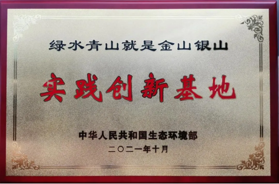 “绿水青山就是金山银山”实践创新基地奖牌。