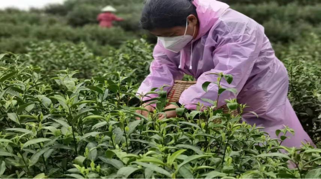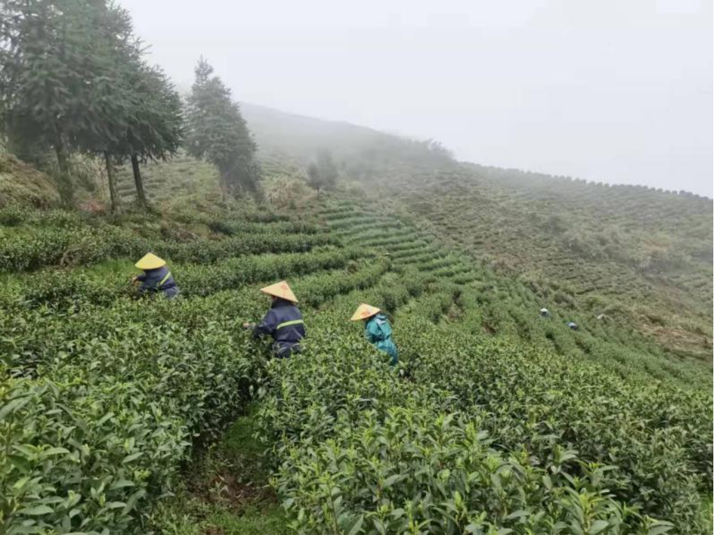 “我去年来做了不到20天的工,拿到了9000多块钱,今年茶叶多,估计挣得会更多。”今年年初,何家乡长风村村民毛玉桔就到基地报了名,一到菜茶时间就来上工了。