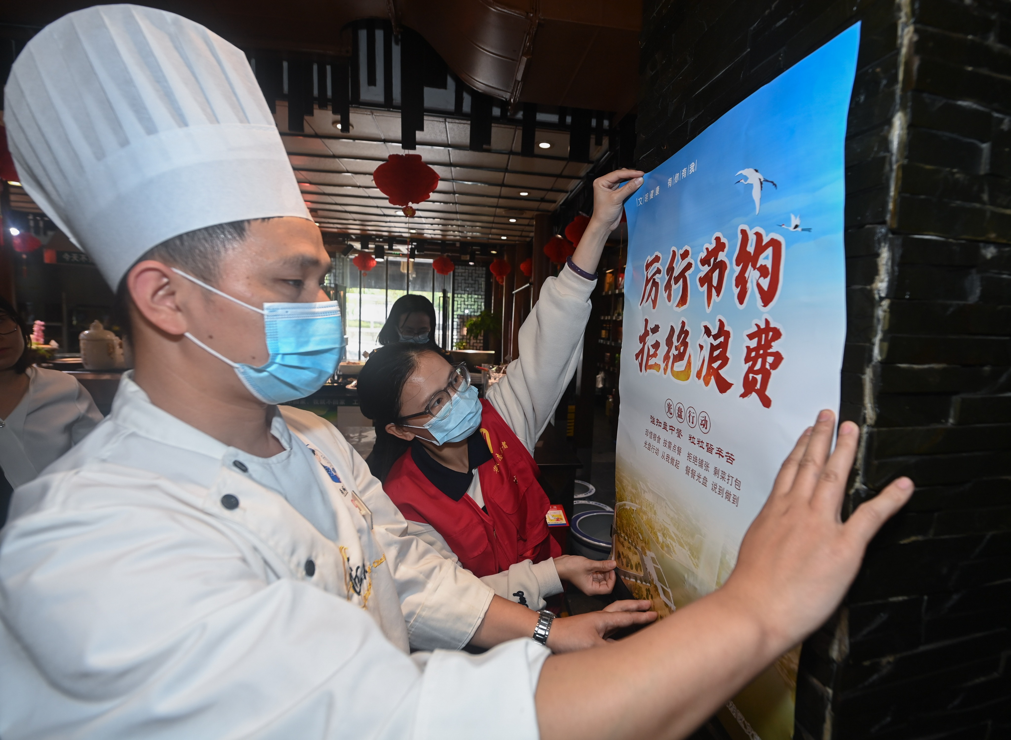 今年以来,浙江省嘉兴市南湖区开展“厉行节约、反对浪费”专项行动,聚焦辖区餐饮企业和村社文化礼堂家宴中心,开展“公筷公勺”示范街区创建、“光盘行动”主题宣传、校园公益环保袋绘制等主题活动,并通过印制和发放公益海报,播放公益广告、视频等形式,倡导节约,拒绝“舌尖上的浪费”。
