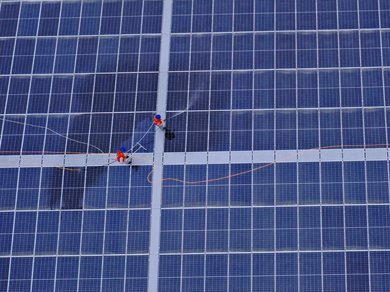 “光伏板要定期维护,如果运维不善,组件表面长期有水渍、杂物等覆盖,会导致产生热斑,除了功率损失之外,还会加速组件老化,严重影响组件寿命。”图盛集团平阳昌泰公司运维中心负责人说。据运维平台监控数据显示,清洗后的光伏板发电效率能提高约15%。