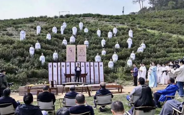 今天径山,万物吐翠,新茶飘香,第九届径山茶祖祭典活动在浙江省杭州市余杭区径山举行。敲击茶鼓、躬身行礼,茶农们以虔诚的方式祭拜径山茶的“鼻祖”——国一大觉禅师法钦和唐代茶学家陆羽。