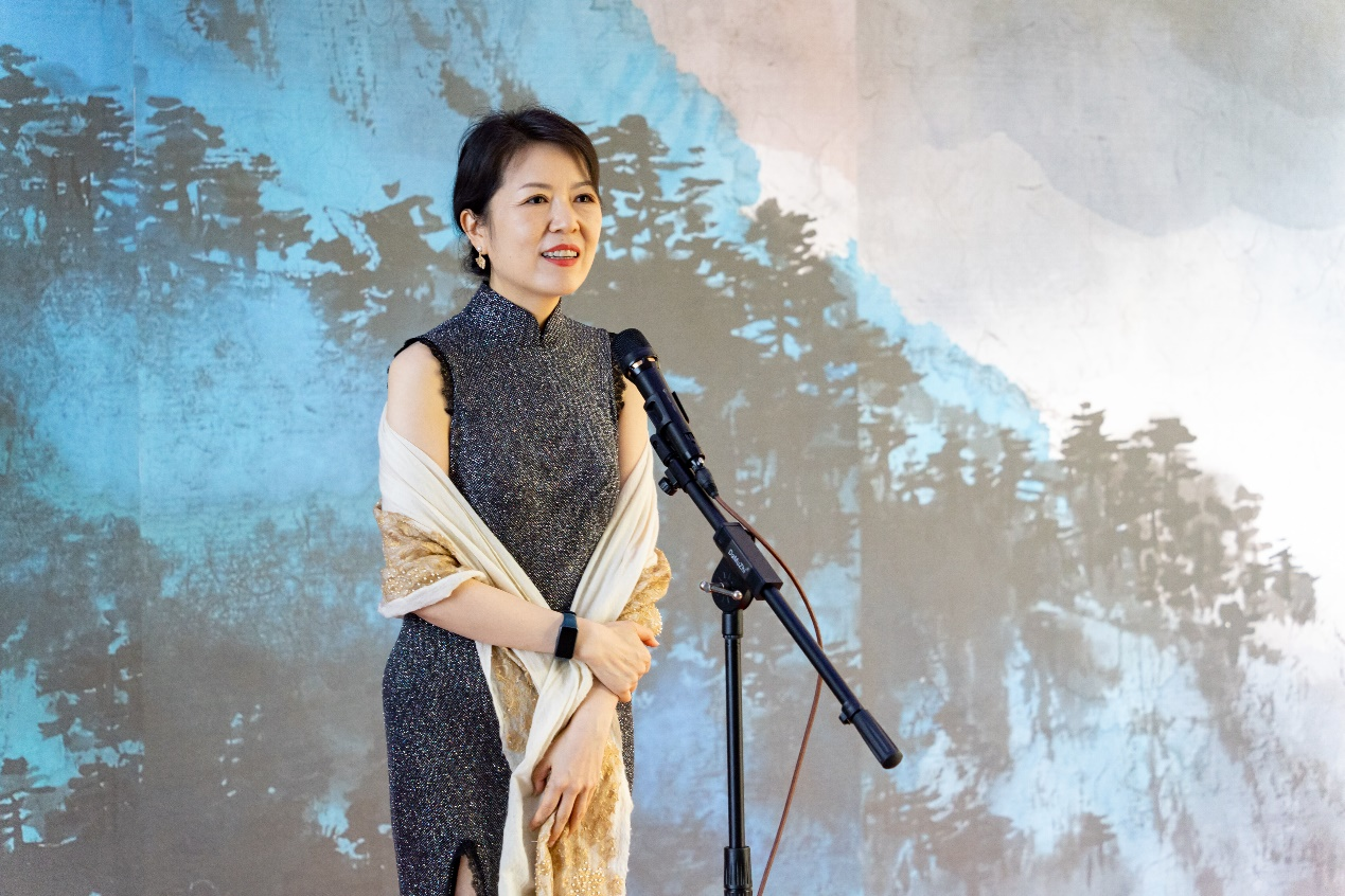 文蔚的艺术创作与杭州的传统文脉同频共振。杭州画院副院长、杭州市美术家协会副主席兼秘书长缪宏波介绍:“文蔚老师常在江南采风写生,作品中也能体现出烟雨江南的气息。”