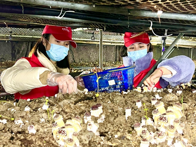 冬天是万物沉睡的季节,但在海盐县的一家种植基地里,却是一片热火朝天。棚架上是一簇簇鲜活的赤松茸,棚架外是采摘客们在工人的指导下有序采摘。