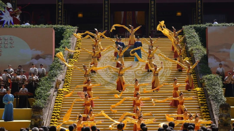 近年来,缙云着力推动黄帝文化走出去。今年年初,60多个国家的200多名留学生代表走进缙云,感受黄帝文化。“我们在黄帝祠宇观看祭典表演《轩辕颂》,击鼓撞钟,很有趣。”留学生洛狄说。