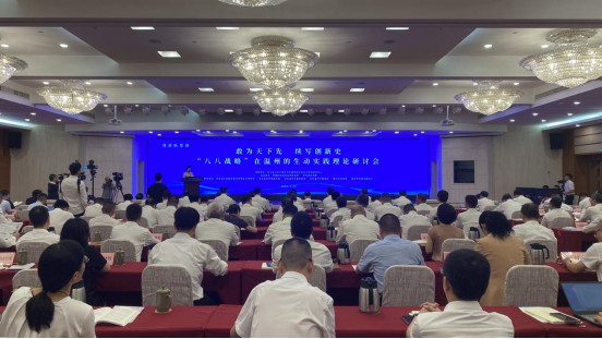 7月22日,“八八战略”在温州的生动实践理论研讨会举行。与会代表们围绕“敢为天下先 续写创新史”主题共同研讨交流“八八战略”的丰富内涵、实践要求和时代价值,持续推动“八八战略”走深走实。