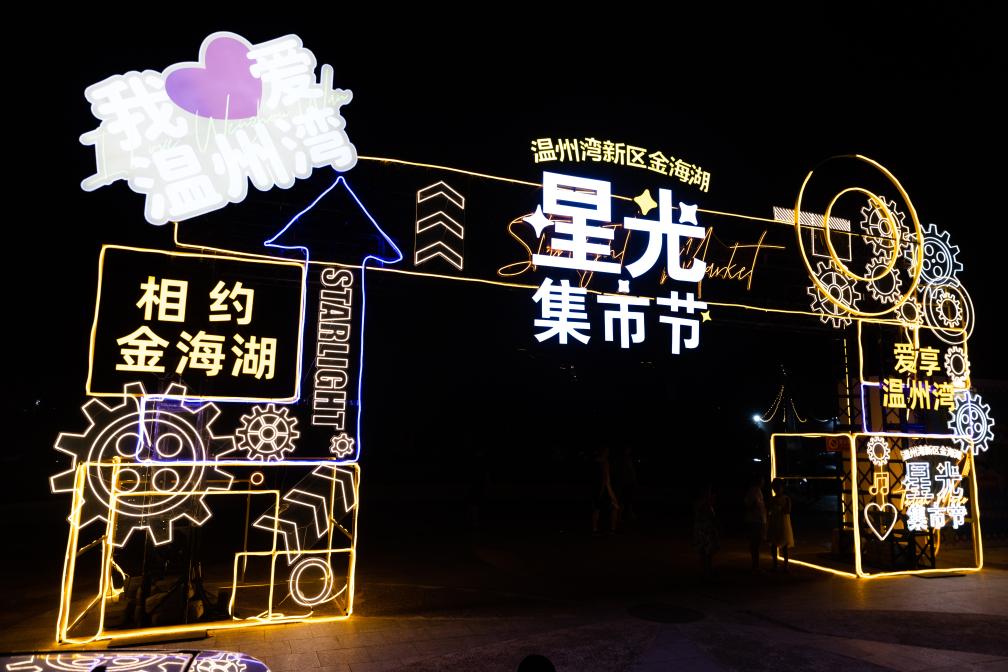 近日,“相约金海湖 爱享温州湾”2023温州湾新区金海湖·星光集市节拉开序幕。夜幕降临,华灯初上,集市里璀璨的灯光、激情的音乐、诱人的美食、丰富的夜间活动吸引了大批市民前往。据悉,温州湾新区于2023年4月正式挂牌成立,是浙江省第七个省级新区,也是浙江目前最年轻的省级新区。(刘佳慧)