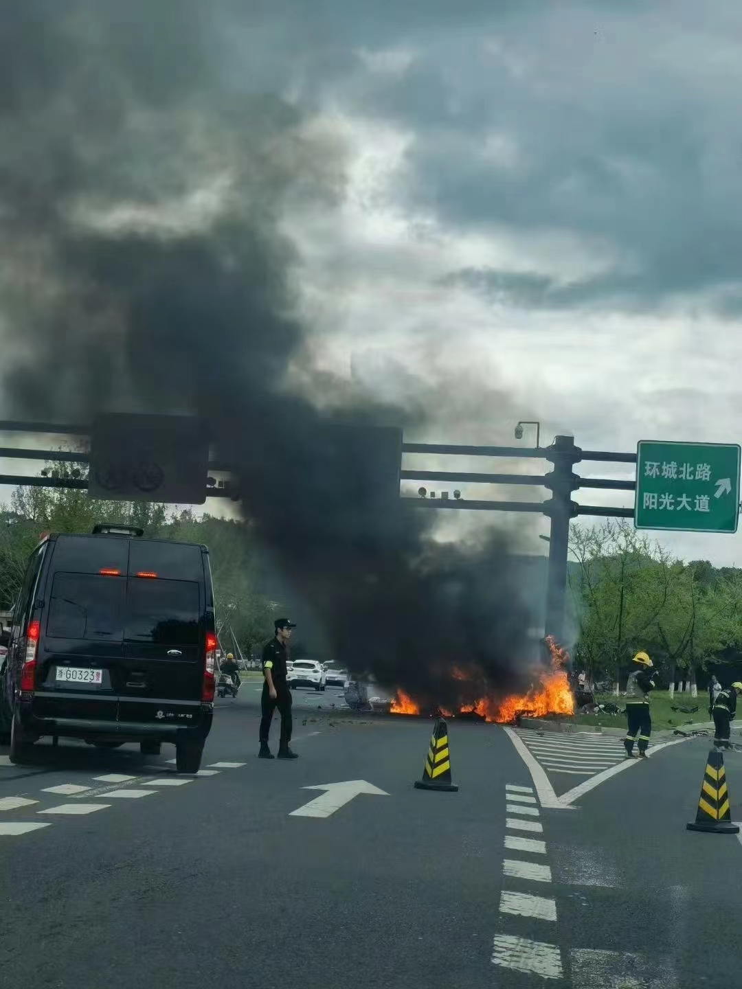 新华网杭州8月1日电(记者唐弢 殷晓圣)8月1日14时48分许,浙江义乌市机场路凌云立交路段,一辆电动车经过辅道叉口时撞上路柱后起火。接警后,义乌市公安局立即联动消防、120救护等力量开展事故处置、现场救援等工作。