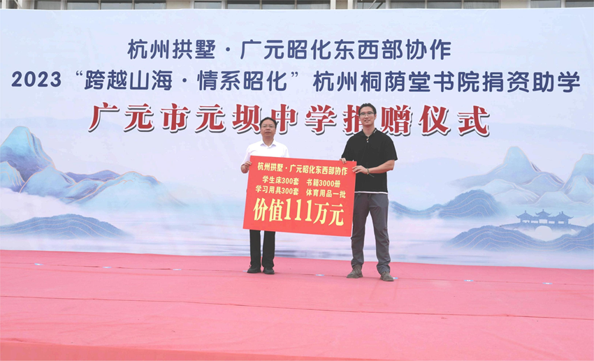 杭州市拱墅区政协副主席周钢,广元市昭化区委常委、副区长孟飞,昭化区政协副主席李晓容等出席捐赠仪式,到场的还有拱墅区、昭化区工作人员,38位捐赠方代表及元坝中学200余位师生。
