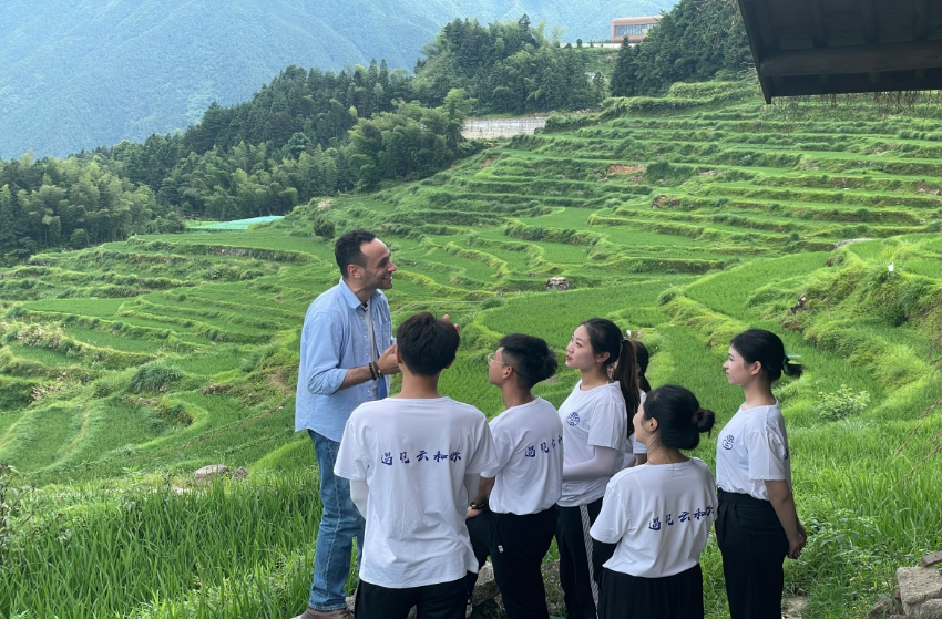 诗画浙江友好使者、该校外籍教师福迪尔以指导老师的身份参加活动。中外师生用脚步丈量梯田,在中外视角的碰撞中挖掘、拍摄优质的海外宣传内容,面对层层翠绿的梯田与蓝天白云、绿水青山交相辉映的美丽画面,福迪尔由衷赞叹云和如诗如画的乡村风光。“云和梯田不仅展示了浙江省令人叹为观止的风景,而且描绘了一个独特的文化故事。当地人民的谦虚和勤劳深深地打动了我。通过这次活动,我对云和梯田有了更深入的了解,我会毫不犹豫地把云和梯田推荐给身边的朋友,欢迎大家来到这个人间仙境,感受中国和乡村的美丽。”