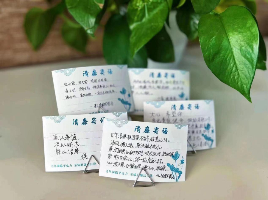 近日,国网杭州市临平区供电公司以“纸短‘廉’长,言简情深”为主题,开展家庭助廉系列活动之清廉寄语活动。活动旨在引导公司上下注重家风建设,传承良好家风,廉洁从业、廉洁修身、廉洁齐家。
