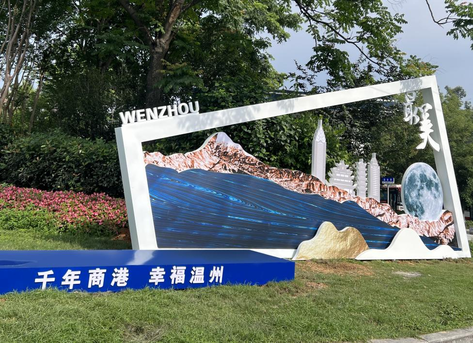 温州西收费站外广场地域特色牌塑。