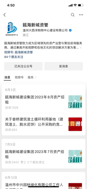 瓯海新城资管平台截图。温州市瓯海区委宣传部供图