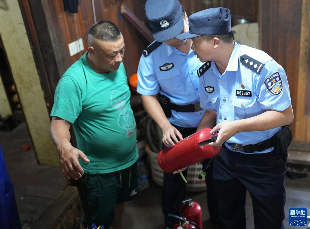 8月16日,舟山市公安局普陀区分局民警对泊岸渔船进行常态化安全隐患排查。新华社记者 翁忻旸 摄