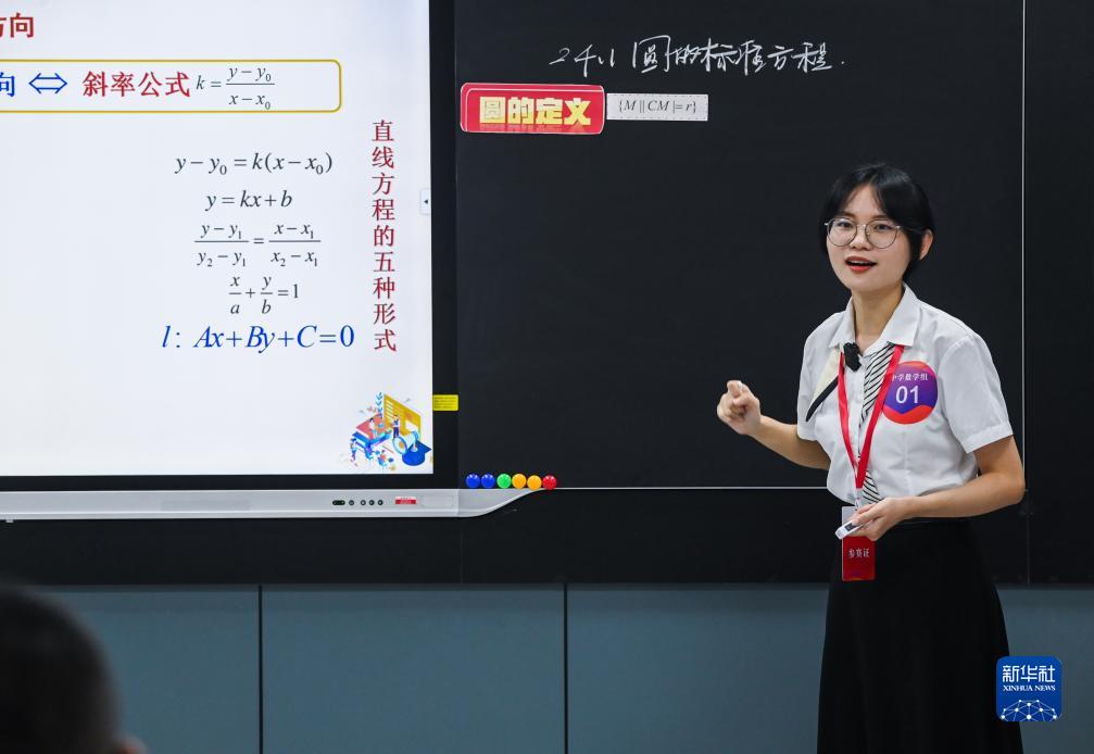 8月22日,中学数学组的一名教师在进行教学展示。