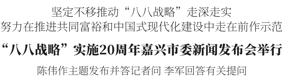 8月21日下午,“八八战略”实施20周年嘉兴市委新闻发布会举行,主题为“坚定不移推动‘八八战略’走深走实,努力在推进共同富裕和中国式现代化建设中走在前作示范”。