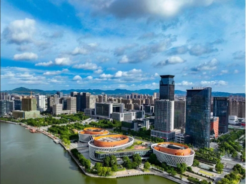 箭港河水系,全长约5.2千米,是镇海区东排南线工程建设的重要部分,也是宁波中心城市北部商贸商务中心核心区的标志性水系景观。从空中俯瞰,蜿蜒的河道犹如一条青绿色的丝带,奔腾不息间给城市平添清新灵动之美。