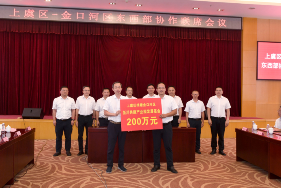 8月28日,绍兴市副市长、上虞区委书记鲁霞光率区党政代表团赴乐山市金口河区对接东西部协作工作,联席会上,上虞区还向金口河区捐赠了浙川共建产业园发展基金、“绍乐同行”乡村振兴党建联建项目共建资金。上虞将继续高标准高质量做好虞金协作工作,并在新征程上共同谱写两区现代化建设新篇章。
