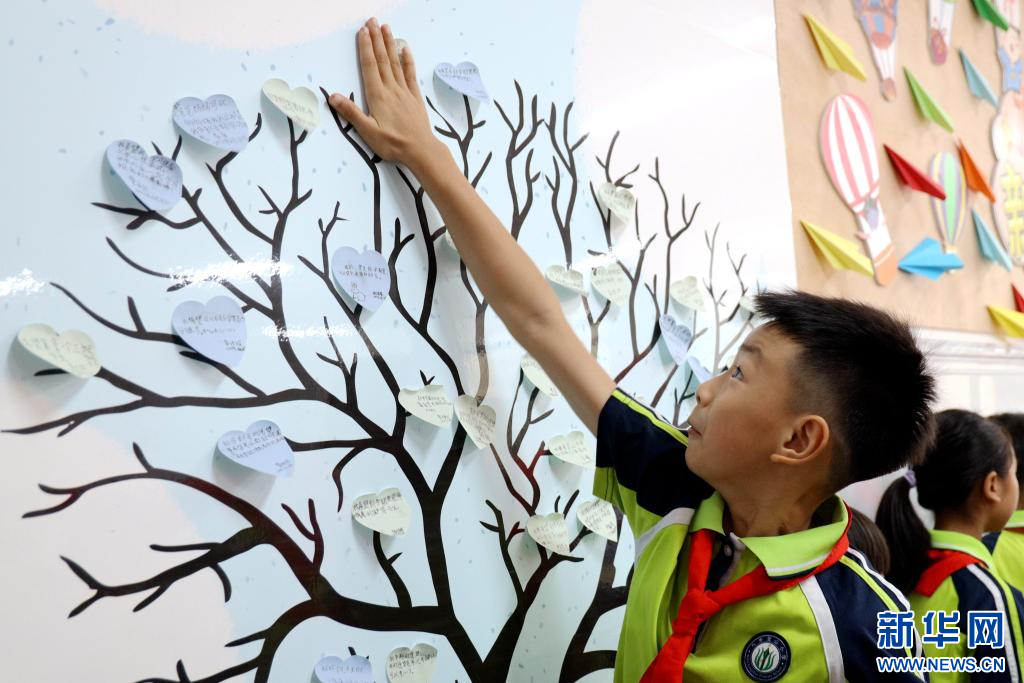 在广西贺州市八步区龙山小学的开学第一课上,同学们写下新学期的心愿。(邓静子 摄)