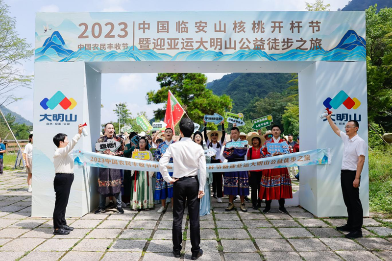 9月8日,2023中国临安山核桃开杆节暨迎亚运大明山公益徒步之旅活动在浙江省杭州市临安区清凉峰镇大明山景区举行。