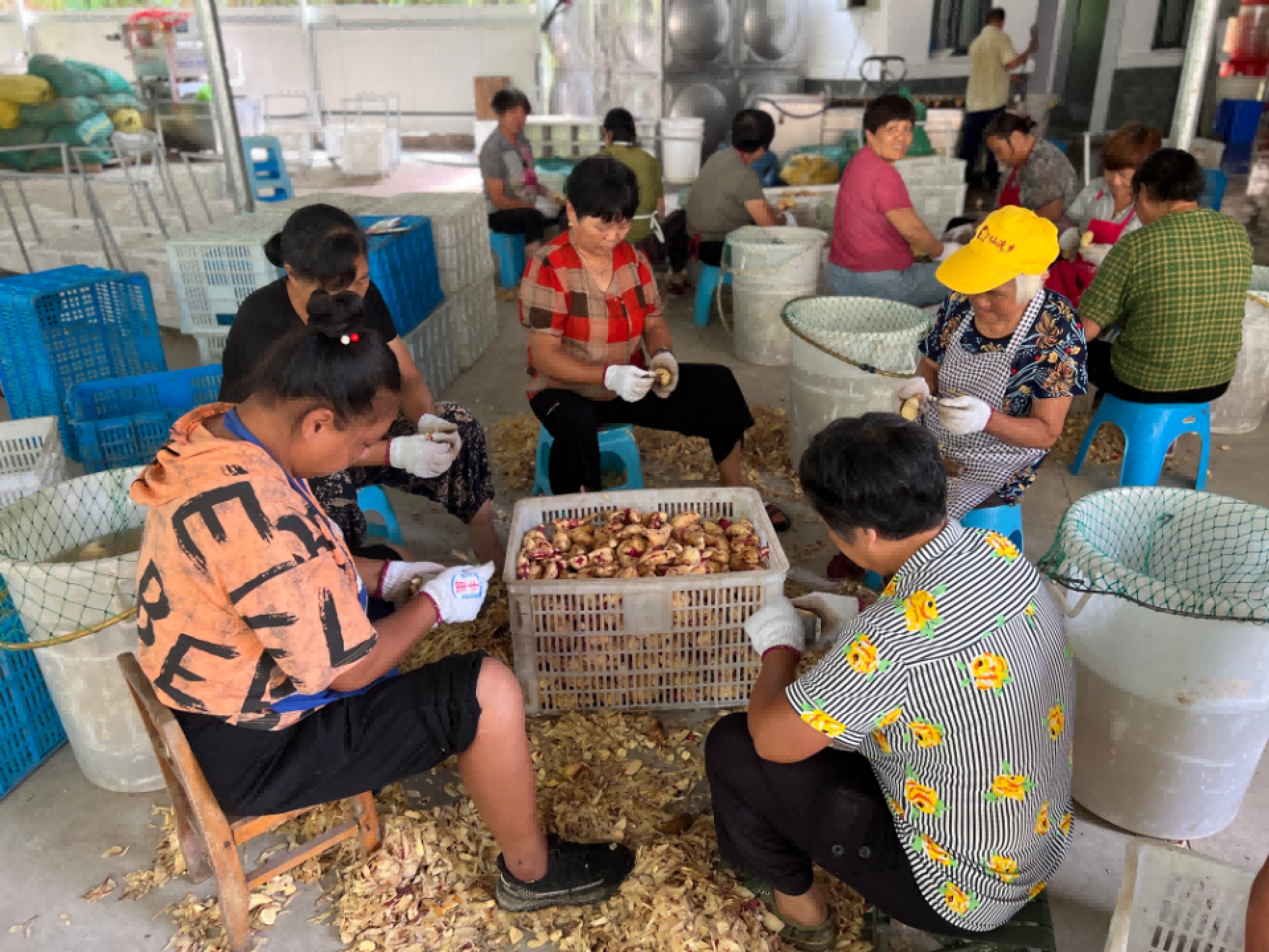 丽水市中农智康科技有限公司生产车间,十余位老人围坐在一起正给番薯去皮。“在这里工作既开心,又可以赚钱,一个月三四千的收入,自己很满足。”今年79岁的武娇莲说。