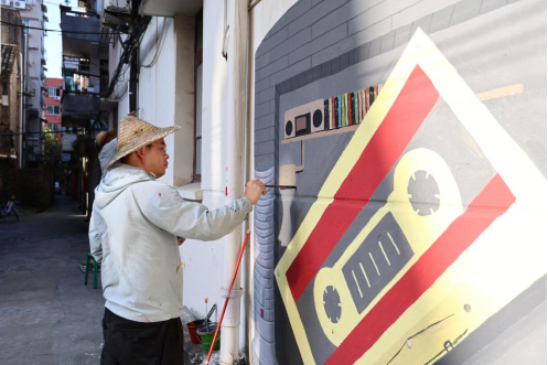 太平新村建造于上世纪七八十年代,目前居住的大多是上了年纪的老人。今年,太平街道把太平新村列入微改造精提升项目,结合太平新村老旧、地理位置等因素,设计了怀旧墙面彩绘,对小区外墙进行改造。