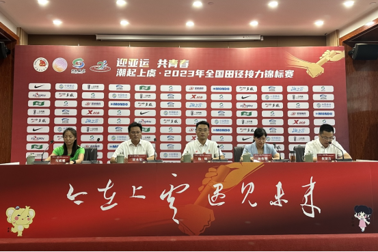 “迎亚运 共青春”潮起上虞·2023年全国田径接力锦标赛新闻发布会现场。