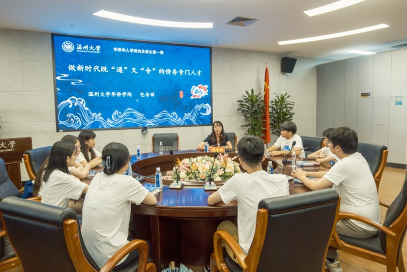 开学当天,温州大学华侨学院院长包含丽以《做新时代既“通”又“专”的侨务专门人才》为题,为新生带来“开学第一课”,希望新生们尽快适应研究生生活,做好工作与学习规划。