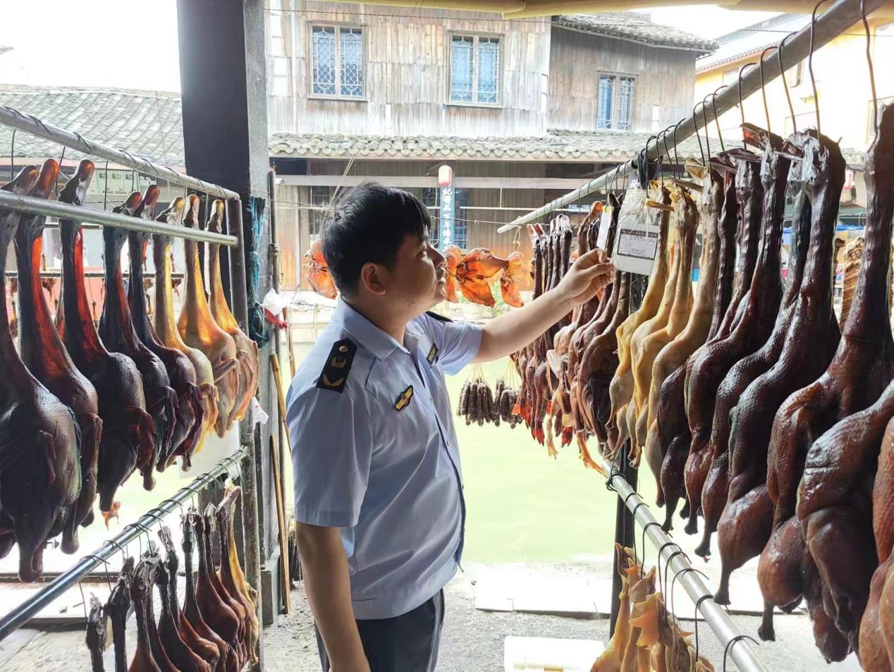 据了解,假期期间景区开展了系列专项行动,为双节旅游保驾护航。安昌古镇的各类小吃,既是古镇品牌,也是绍兴特色。为确保游客吃得放心,景区围绕店内环境卫生、食品安全、标识标签等开展专项检查,切实加强监管,保障“舌尖上的安全”。2023年以来,景区还专门建设了61个一键出水设施,节前分段式开展消防演练,让沿河商户知晓、会使用。同时,对经营户灭火器配备、煤气桶及管道安全开展地毯式检查,古镇内二三进弱电也完成了穿管。