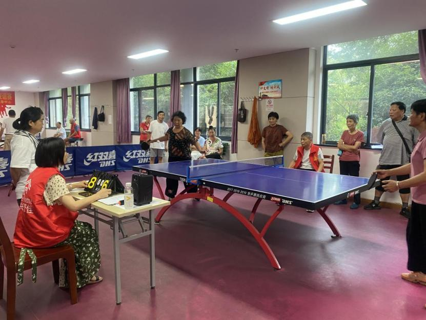 海盐县老年电视大学乒乓球友谊赛。