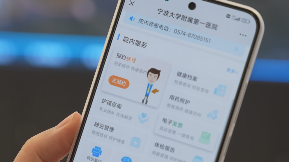 宁波大学附属第一医院还建设了贯通全病程的掌上融媒体智慧导医平台,整合线上线下21项诊疗服务,实现了就医流程“一掌通办”、就医信息“一掌查收”、就医需求“一掌解决”。
