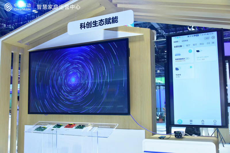 除了精彩新奇的展项,本次展会的“科创、生态赋能”展项备受行业关注。一直以来,中国移动智慧家庭依托业务规模优势,基于四智技术体系,从销售、入口、AI算法、连接、数据、内容六个方面不断赋能生态,将科创成果应用领域拓展至产业生态,构建更开放、智能、繁荣的智慧家庭生态,同时提升成果转化效能。