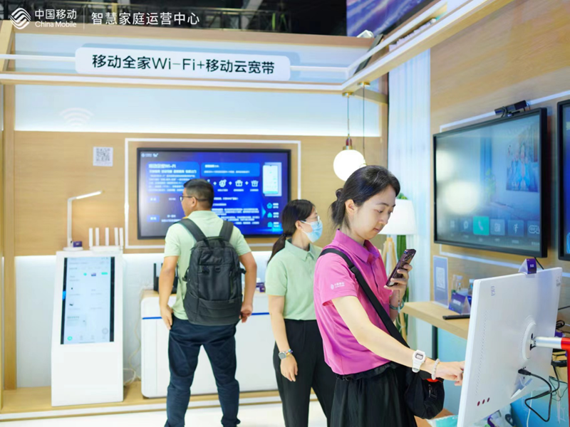 在家庭展区,中国移动智慧家庭以“千兆驱动宽带领先”“内容驱动大屏领先”“平台驱动IOT领先”“生态驱动HDICT领先”划分展项板块,逐一展示“连接+算力+能力”下的智慧家庭最新科创成果与应用场景。