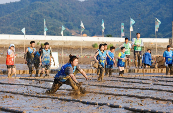 本次挑战赛中,竞技组的20支代表队在滩涂搬物、滩涂障碍、滩涂速滑3个男女个人项目及滩涂拖车、滩涂接力、滩涂赶海、滩涂摸鱼、滩涂救援、滩涂拔河6个男女混合项目上展开激烈比拼。
