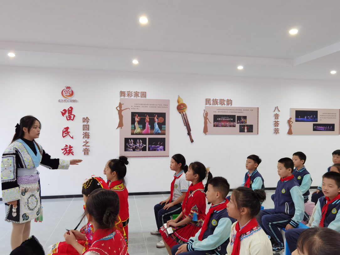 目前,根据各族孩子的年龄和接受程度,柱山小学在每个年级都设立一个民族课主题,比如低年级侧重民族故事、民族歌曲的传唱,高年级增加了对鉴赏、动手能力要求更高的民族建筑、民族服饰课程。“民族文化是我们的瑰宝,接下来将依托新建成的民族馆,进一步丰富民族课程,促进学生之间的民族团结和融合。”诸暨市柱山小学校长宣顺南介绍。(鲁新/文 诸暨市大唐街道办事处/供图)