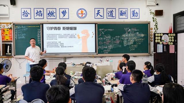 景宁县烟草专卖局工作人员为学生们解读电子烟及烟草制品相关知识。王艳摄