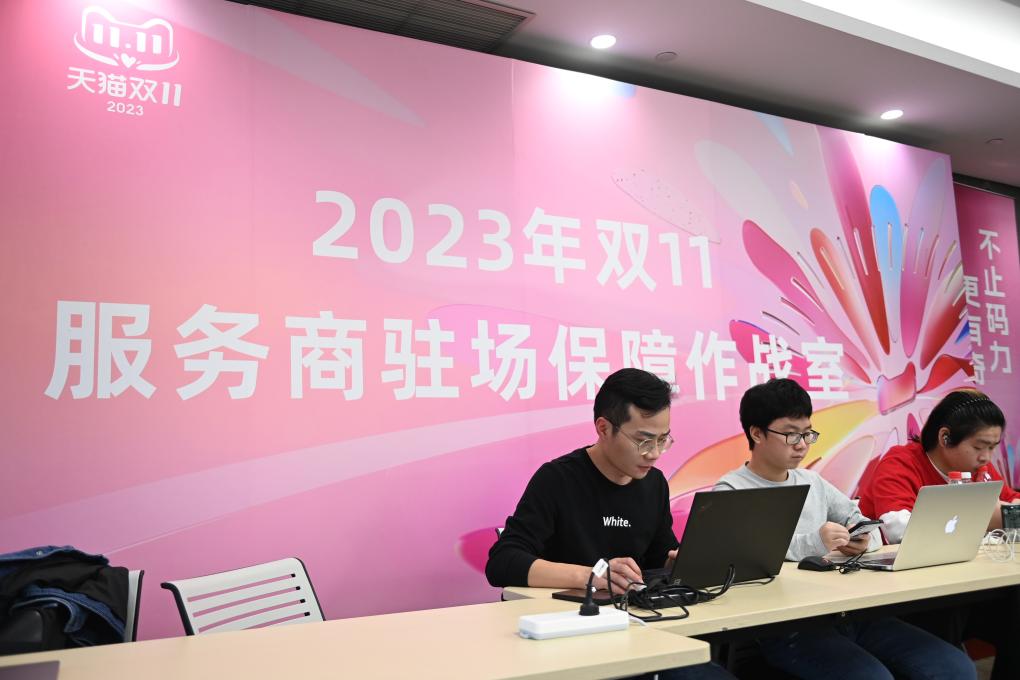 11月11日在阿里巴巴西溪园区拍摄的2023年双11服务商驻场保障“作战室”。新华社记者 黄宗治 摄