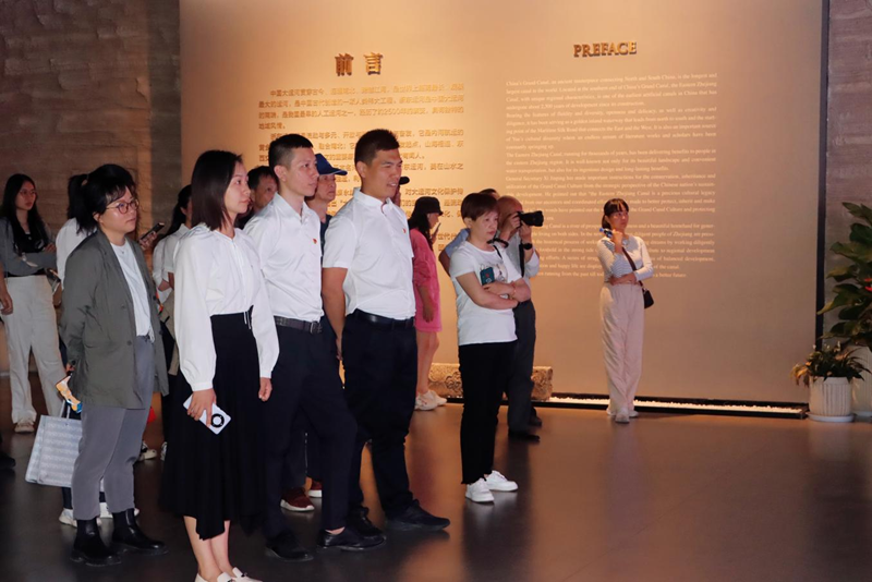在讲解员的带领下,党员们参观了“鱼米水乡溯河源”“千古名河济天下”“越风河韵铸人文”“因河筑梦兴浙东”四部分内容,学习了浙东运河2500多年的发展演变,了解了浙东运河沿线人文历史价值内涵,领略了千古名河的水运伟绩。