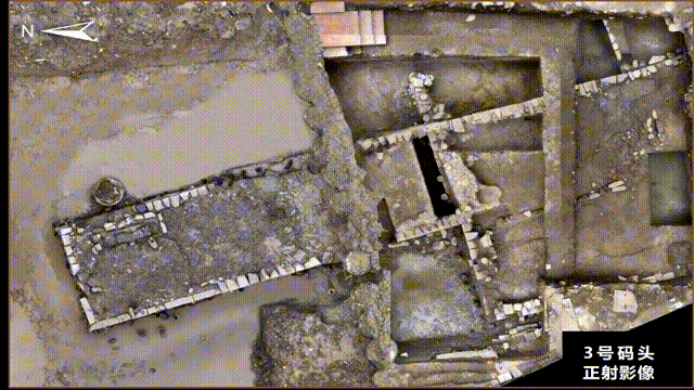 这座码头在遗址挖出的9座码头中是独树一帜的存在,不仅有三层,呈多级月台式结构,还有明显的加建迹象,只不过随着岸线向外推移,加建部分明显变窄。