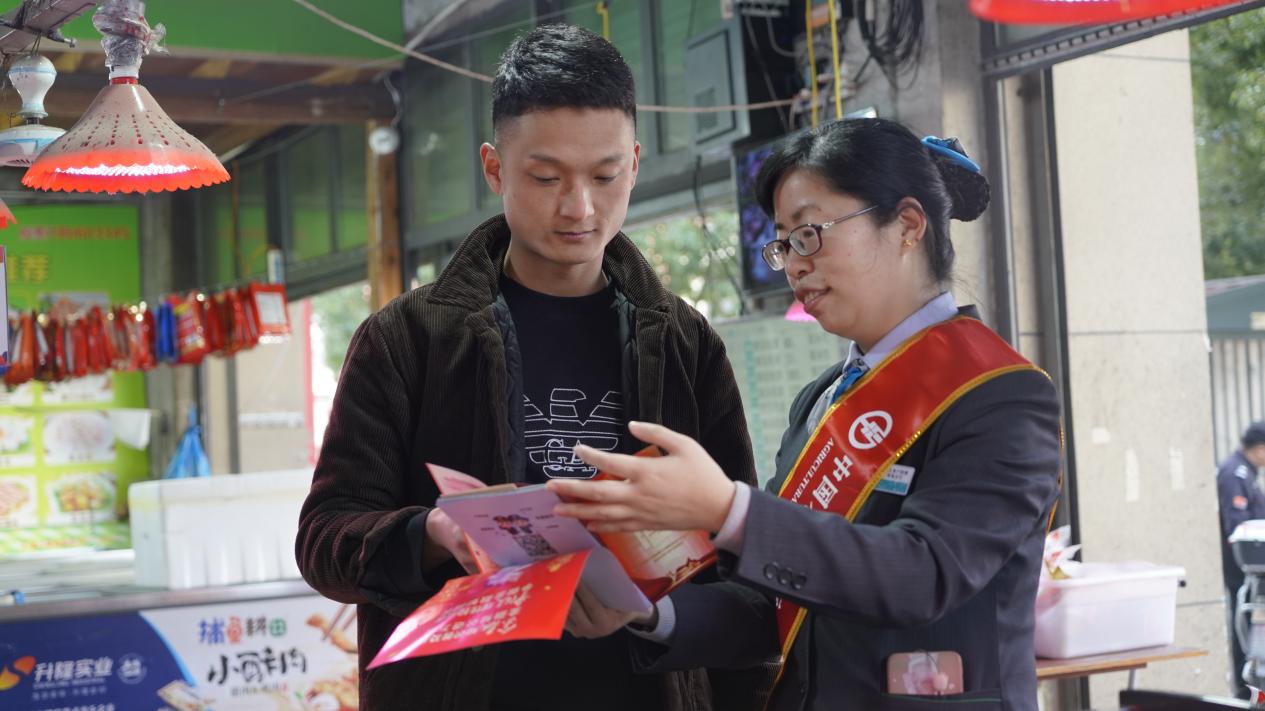农行宁波镇海支行客户经理走进骆驼果蔬市场为个体工商户讲解农行普惠金融产品及政策,同时提醒商户“守好钱袋子”。赵梦青 摄