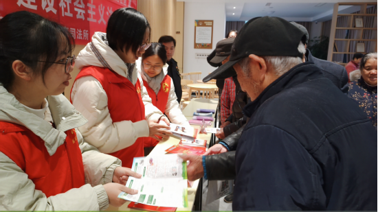 12月4日上午北海司法所联合北海市场监督管理所、北海街道综治办将宪法日普法宣传活动设置在快阁苑社区老年人较为集中的邻里中心,将宪法宣传手册送到老人手中,并以人身权、财产权、赡养扶助等与老年人生活息息相关的权利为例讲解案例,引导其学习宪法及相关法律依法维护自己的权益,并对防范诈骗、继承权、社会保障津贴、行政复议等老年人关心的法律问题作解答。