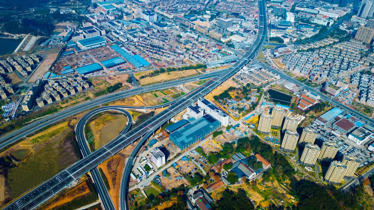 本次通过交工验收的江北至南市段,起点位于湖田枢纽,与甬金高速相接,线路向南连续设7座高架桥穿越东阳市主城区,跨G527国道、S39省道后设西甑山特长隧道,出隧道后终点顺接在建南市至南马段,途经东阳市江北街道、白云街道、吴宁街道、南市街道,线路全长10.7公里,批复概算约45.29亿元,设枢纽互通1处、一般互通及收费站2处,同步恢复改造城区高架桥下方既有地面道路4.75公里。