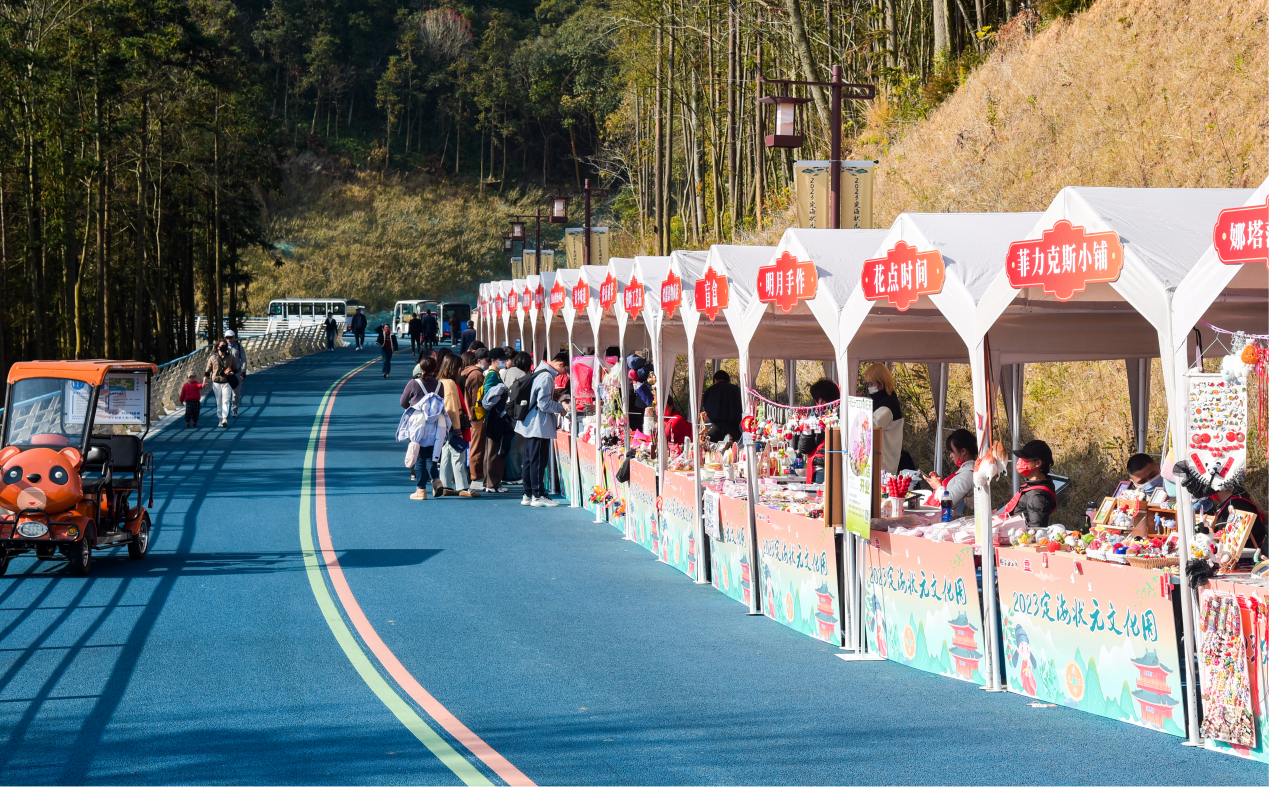 活动现场设立了状元市集,将状元主题系列产品汇聚一堂。近60家宝藏摊主将风味美食、匠心工艺、生活美学、文创手作与状元文化相结合,在云廊之上精彩呈现。